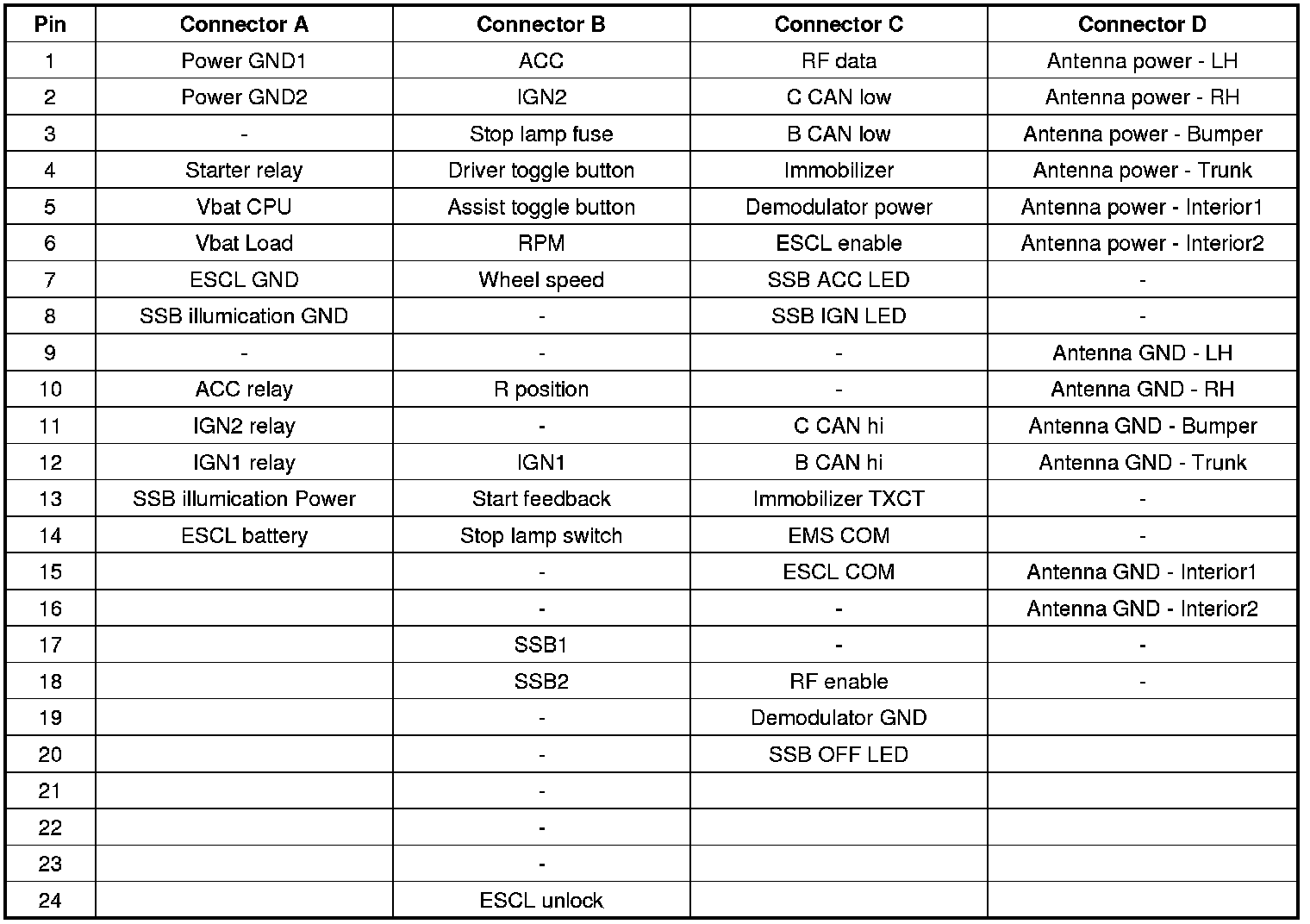 Connector Pin Information