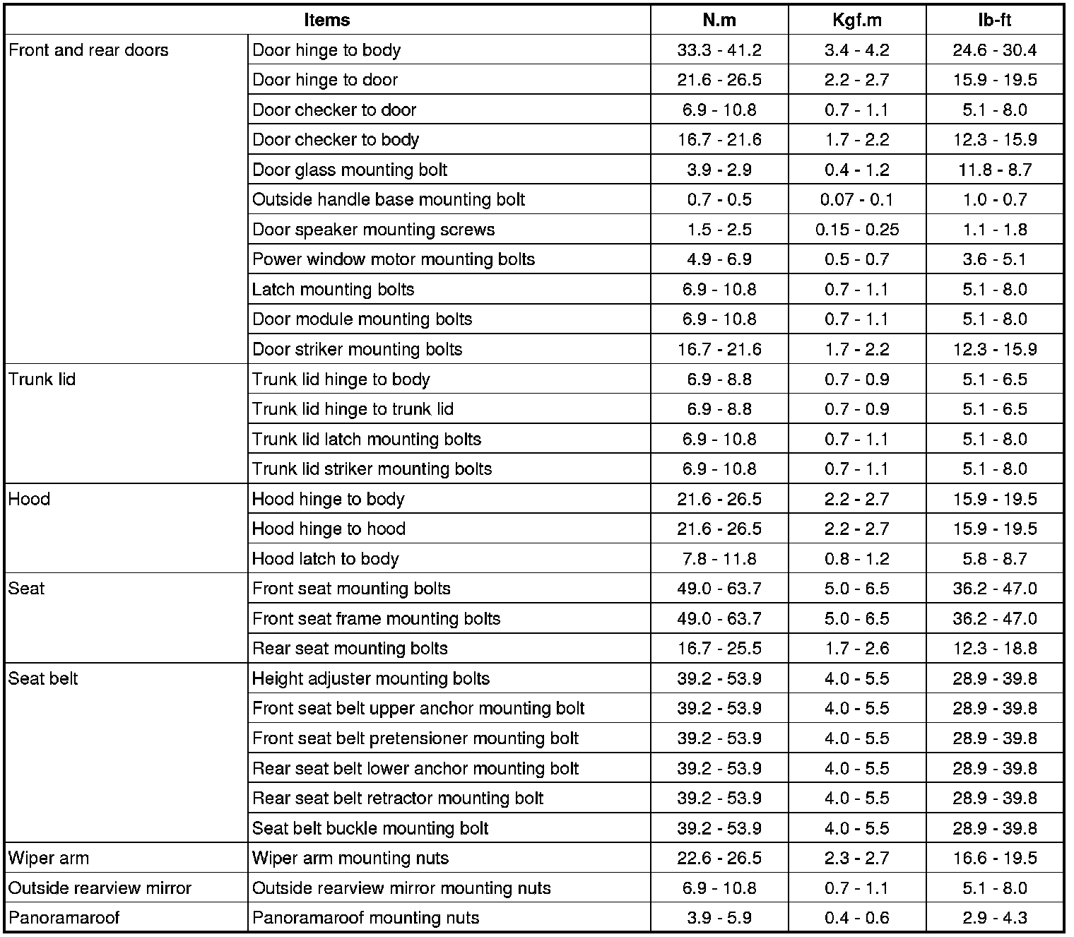 Tightening Torque