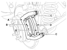1. Check the pad wear. Measure the pad thickness and replace it, if it is less than the specified value.