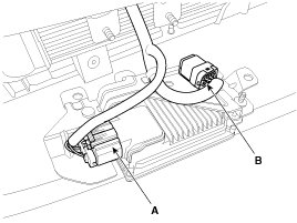 3. Disconnect the FEM joint connector (B) band cable and smart cruise control unit connector (A).