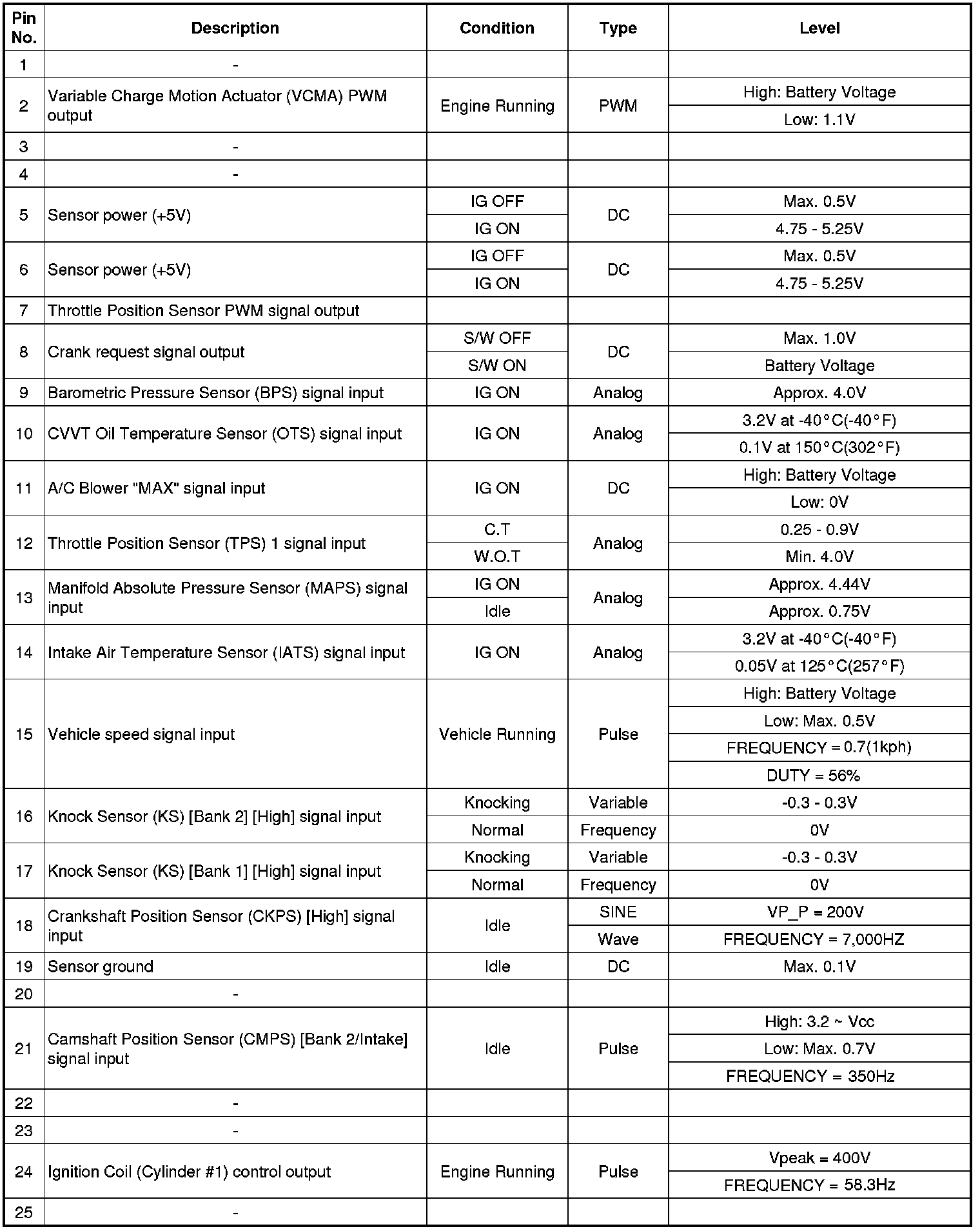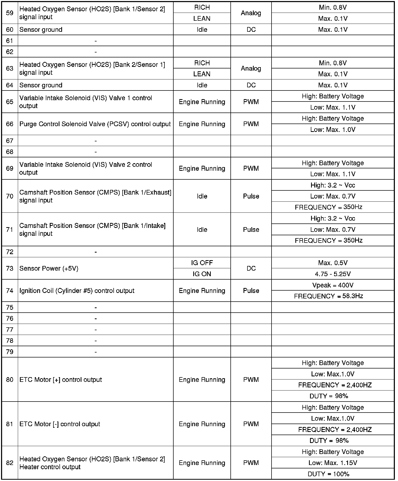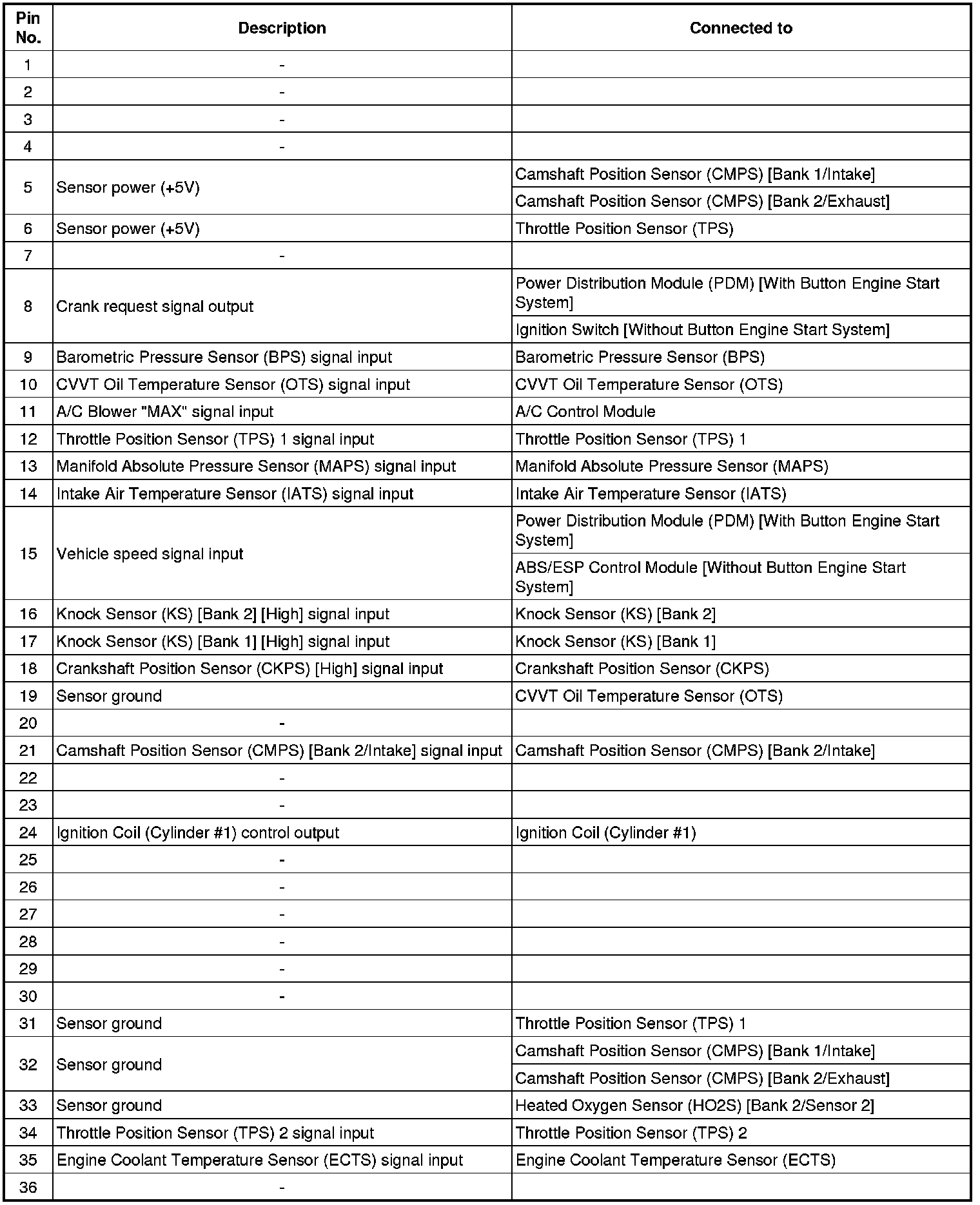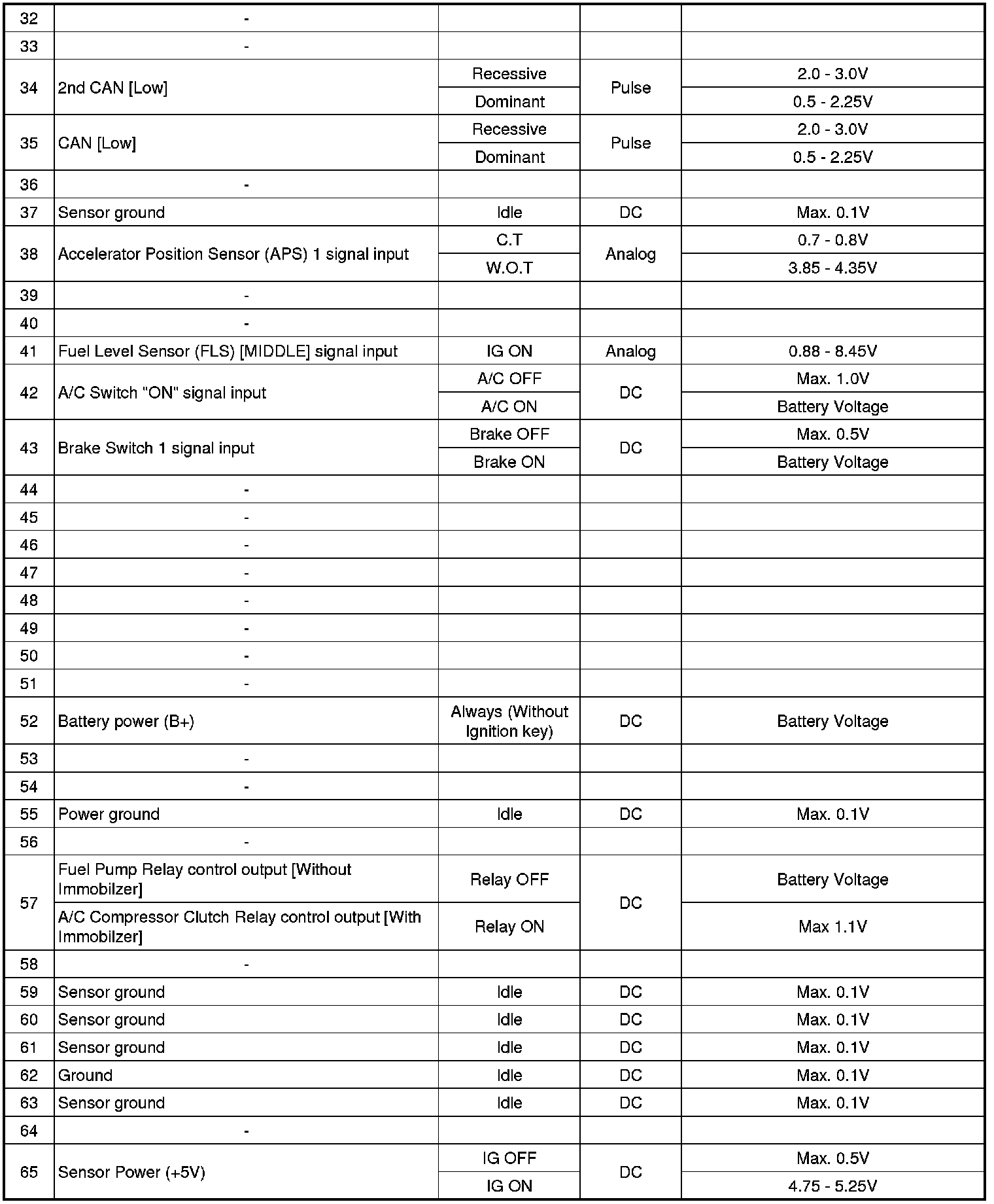 ECM Terminal And Input/Output signal