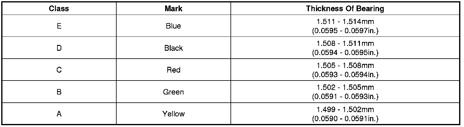 (7) If the plastigage shows the clearance is still incorrect, try the next larger or smaller bearing (the color listed above or below that one), and check clearance again.