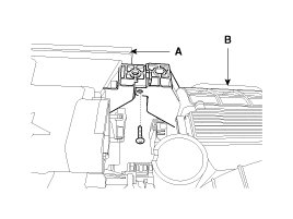 6. Loosen the mounting screw and then remove the heater core cover (A).