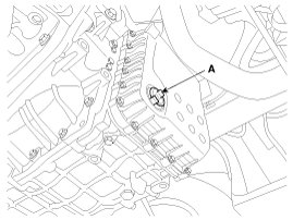6. Lift the vehicle, then remove the oil level plug (A) from the valve body cover.