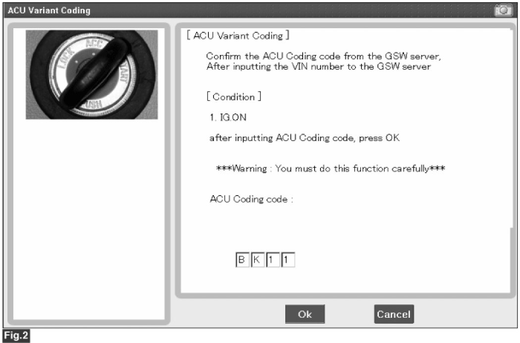 2. If the variant coding is failed, DTC B1762 (ACU Coding Error) will be displayed and the warning lamp will be turned on.