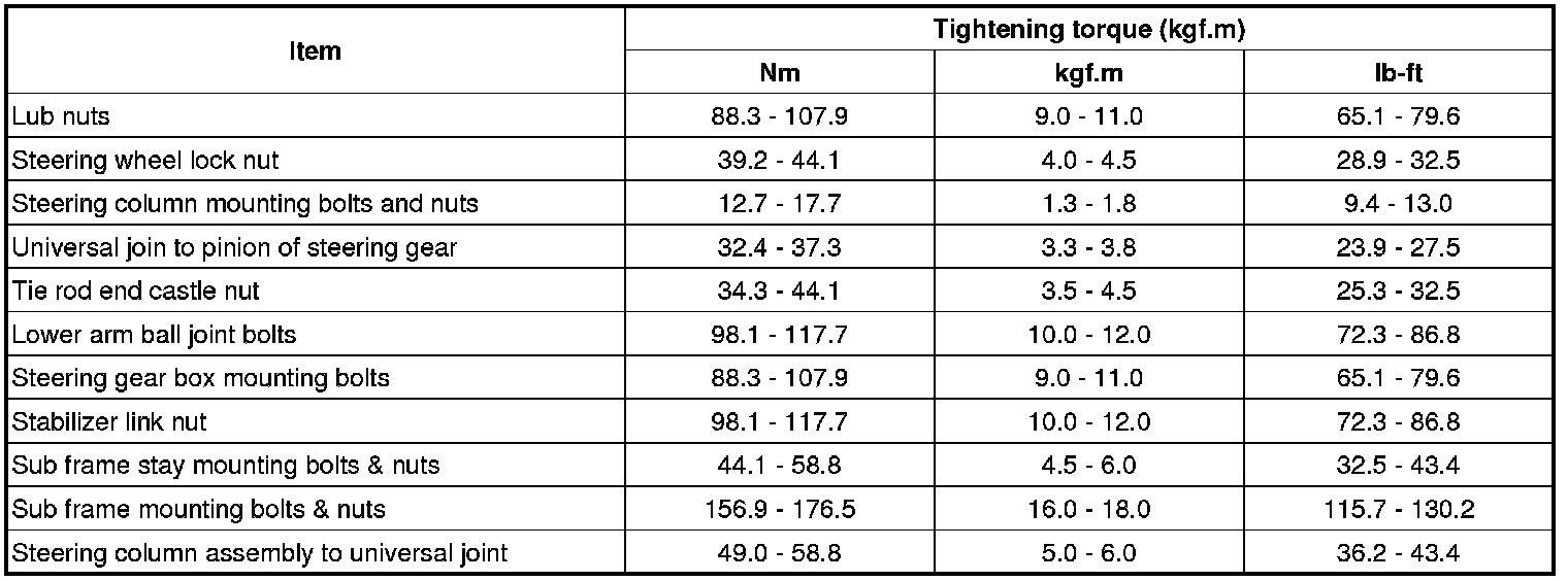 Tightening Torques