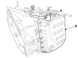 4. Remove the valve body cover (B) and eyebolt (A).