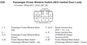 D22 Passenger Power Window Switch (W/O Central Door Lock):