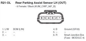 R21-OL Rear Parking Assist Sensor LH (OUT):