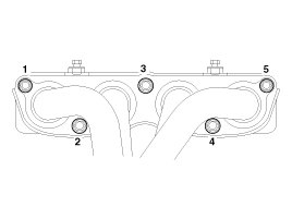 NOTE: When installing the intake manifold, tighten the nuts with pre-torque first, and then tighten the nuts with specified torque in the sequence shown.