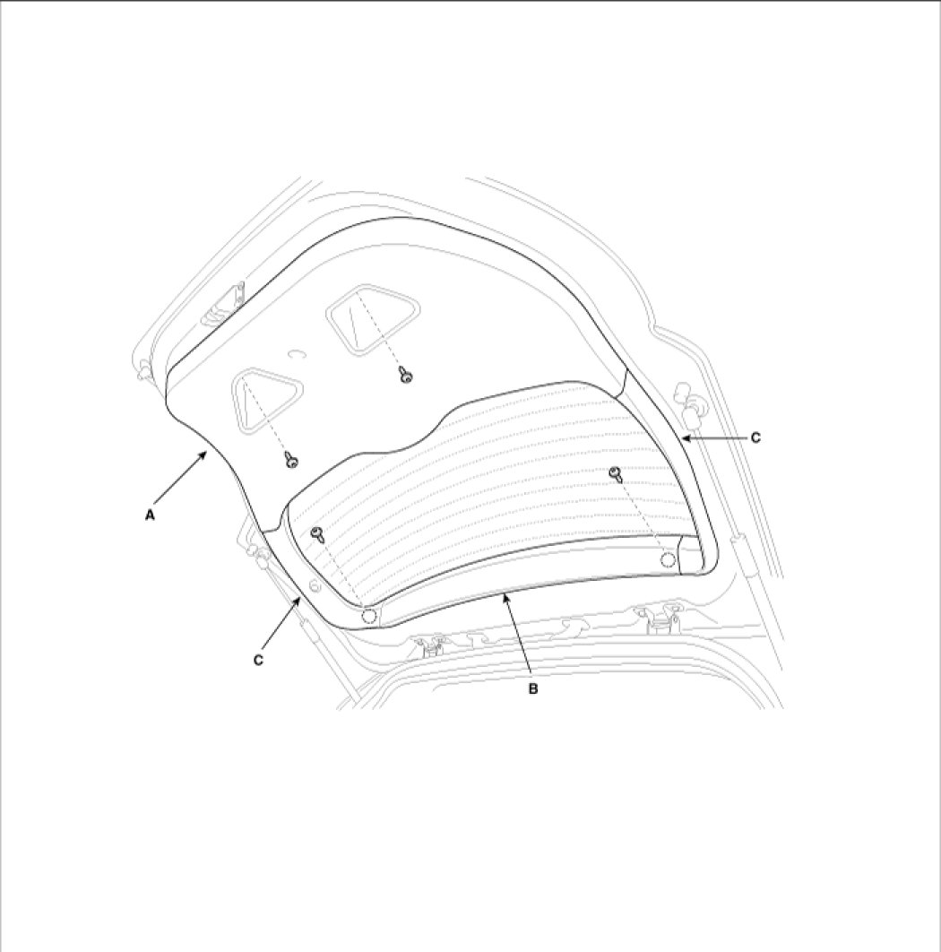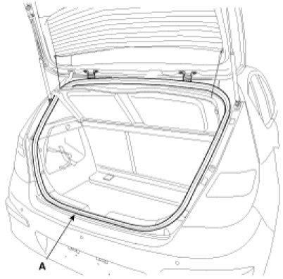 3. After loosening the tailgate garnish mounting nuts, then tailgate garnish (A).