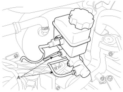 3. Connect the brake lines (A) to the master cylinder.