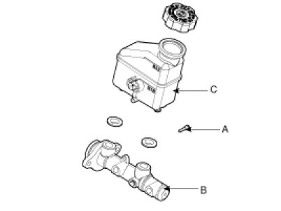 2. Remove the reservoir (C) from the master cylinder (B) after remove the mounting screw (A).