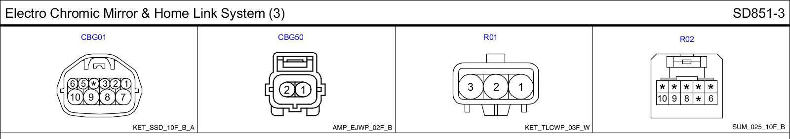 Electro Chromic Mirror & Home Link System (3) Connector Pin Outs: