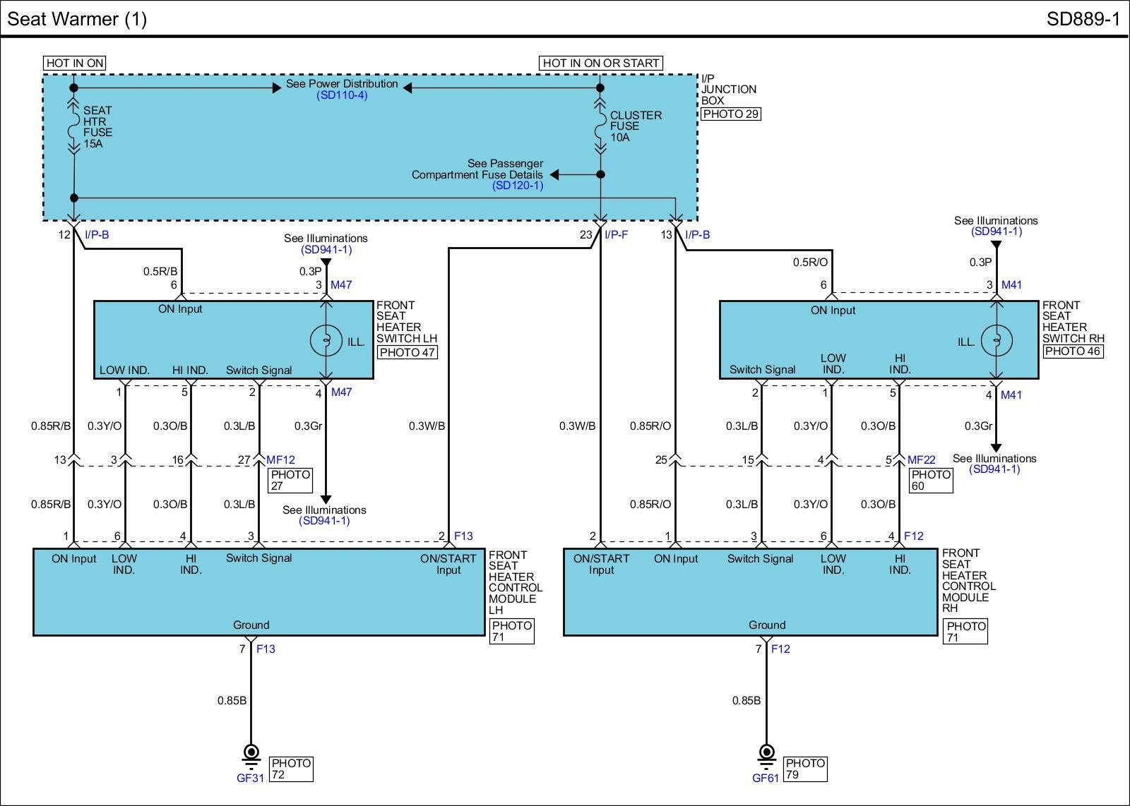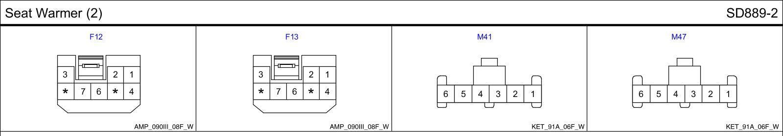 Seat Warmer (2) Connector Pin Outs: