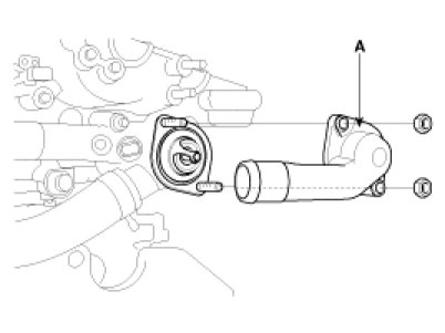 2. Remove water inlet (A), gasket and thermostat.