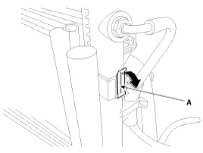 9. After pulling back the condenser fixing bracket(A), remove the radiator assembly.