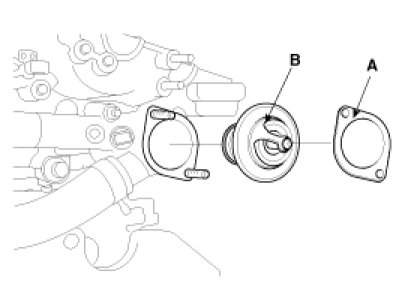 (2) Install a new gasket (A) to the thermostat (B).