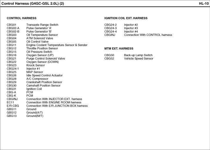 Control Harness Index: