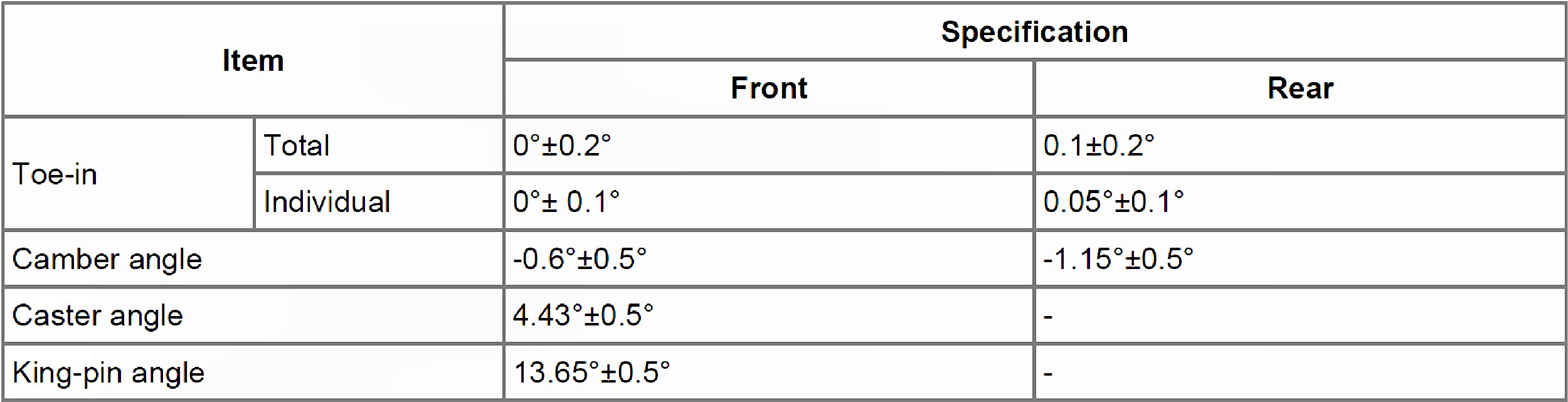 Wheel Alignment Specifications