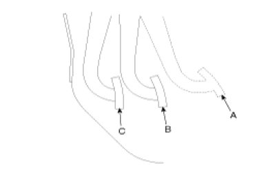The rapidly-repeated operation of the clutch pedal in B-C range may disrupt the release cylinder's position. During the bleeding operation, press the clutch pedal to the floor after it returns to the "A" point.
