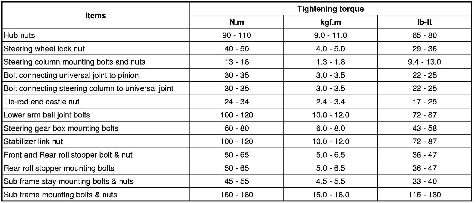 Tightening Torques