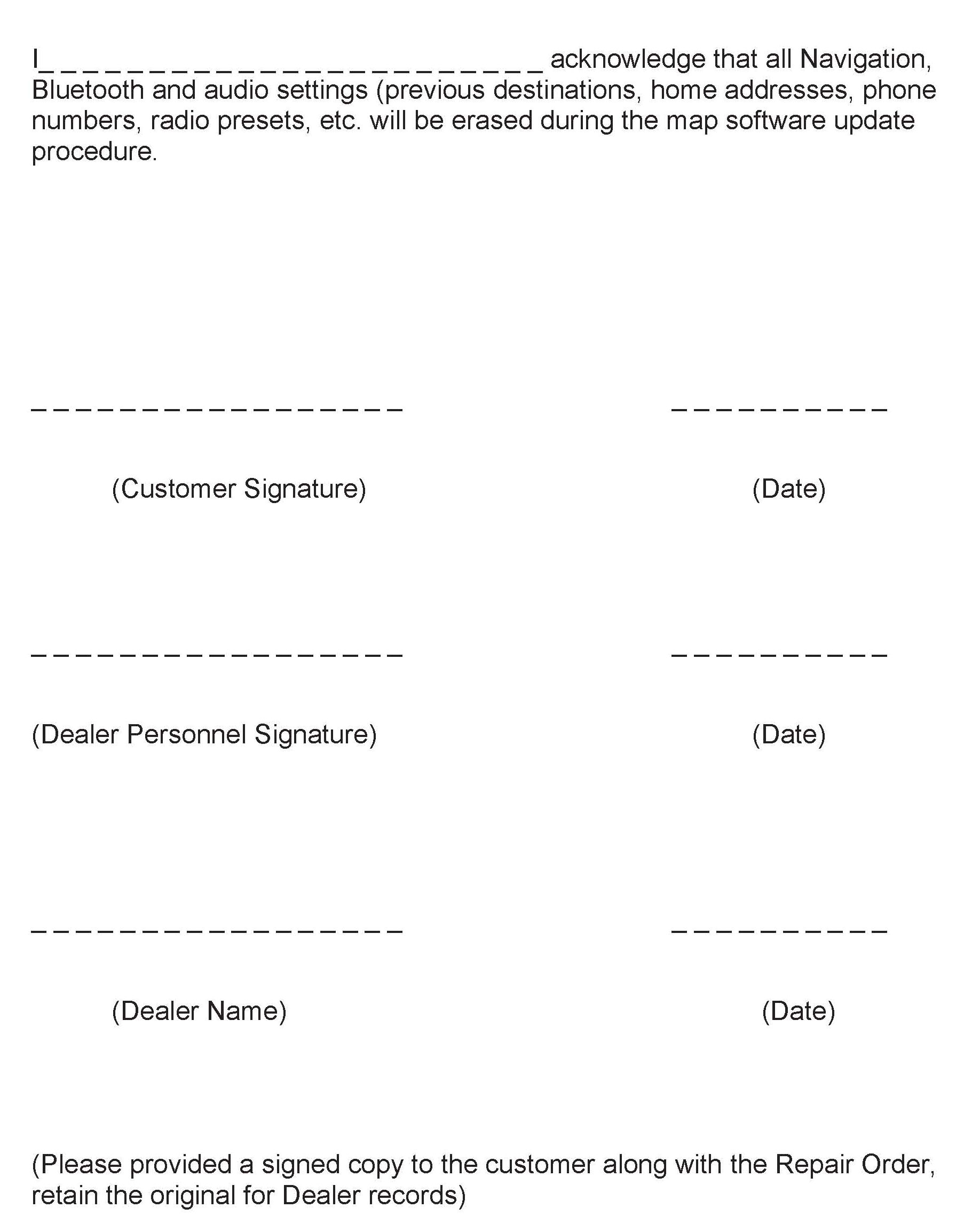 (Please provided a signed copy to the customer along with the Repair Order,