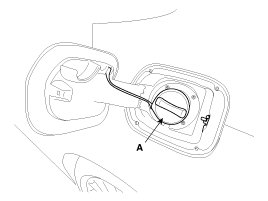 1. Remove the fuel fill door cap (A).