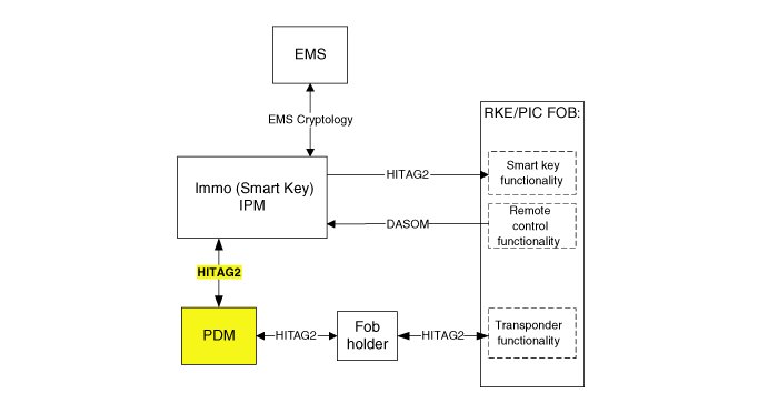 It collects information about vehicle status from other modules (vehicle speed, alarm status, driver door open.), reads the inputs (e.g. SSB, Lock Button, PARK position Switch), controls the outputs (e.g. exterior and interior antennas), and communicates with others devices via the CAN network as well as a single line interfaces.