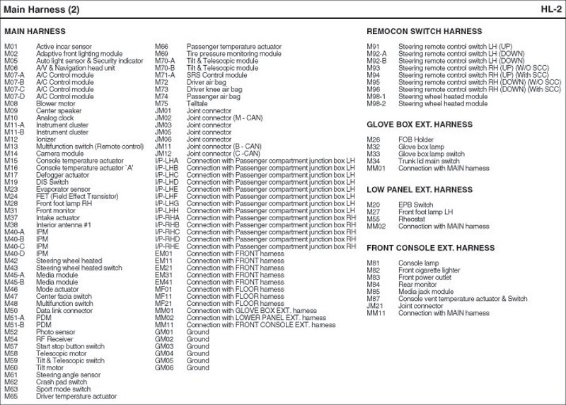 Main Harness Index: