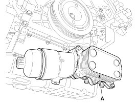 9. Remove the oil filter & cooler assembly (A).