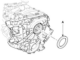 13. Remove the front oil seal (A).