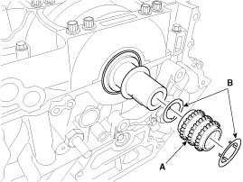 2. Install the crankshaft sprocket (A) with the friction plates (B).