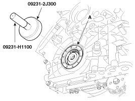 22. Using SST(09231-2J300, 09231-H1100), Install the front oil seal (A).