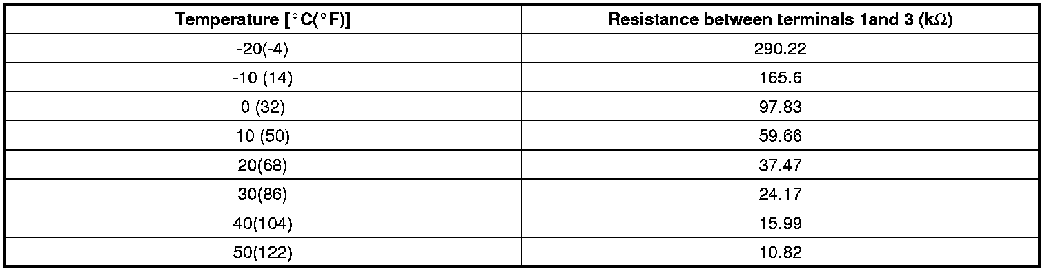 2. Blow air with changing temperature to the in car sensor air inlet. Measure sensor resistance between 1 and 3 terminals.