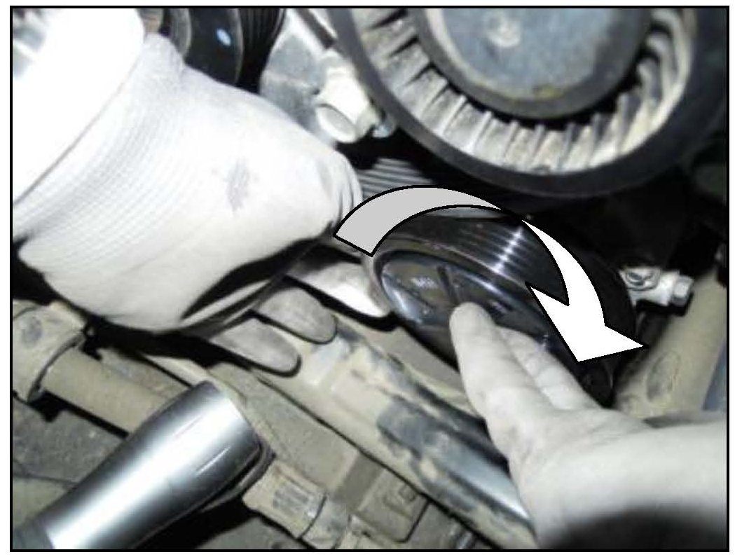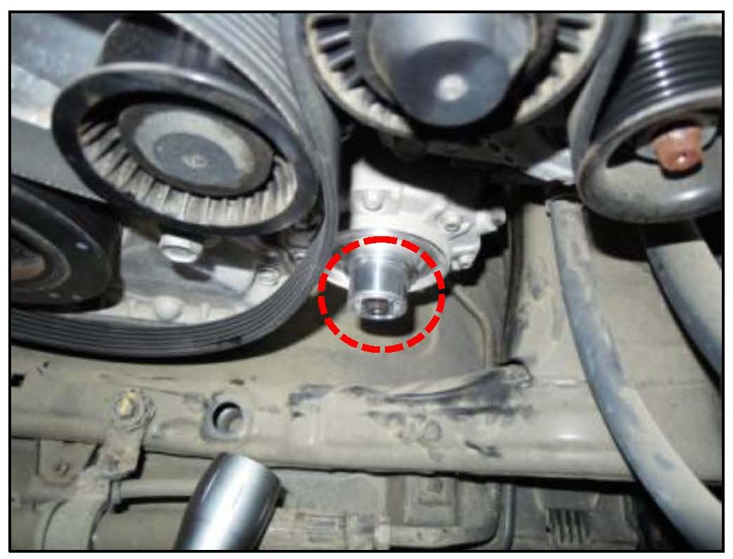 8. Reinstall the 8mm center bolt from the A/C compressor and disc.