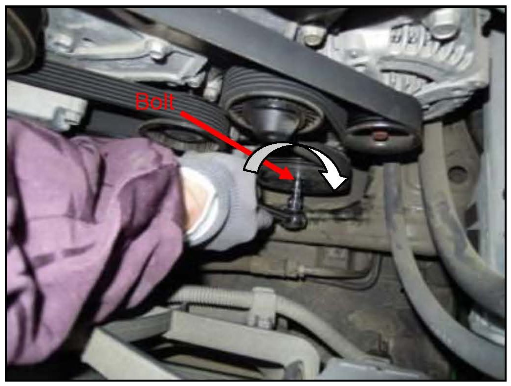 3. Remove the 8mm center bolt from the A/C compressor and disc.