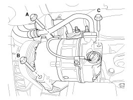 1. Make sure of the length of compressor mounting bolts, and then tighten it A->B->C order.