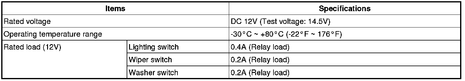 Combination Switch: Specifications