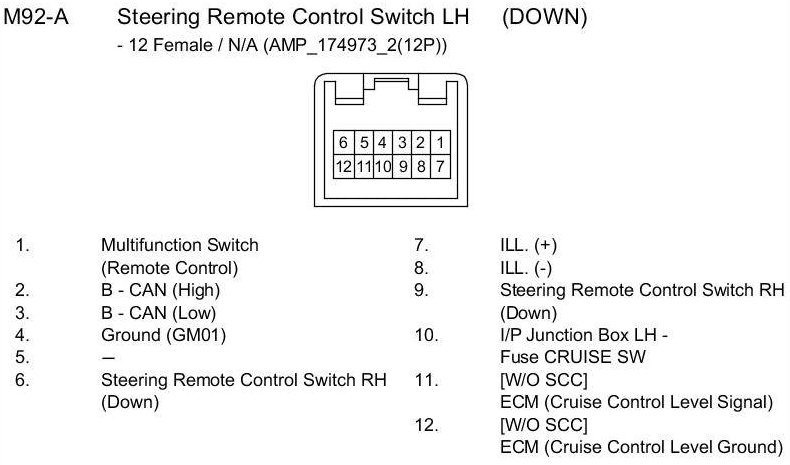 M92-B Steering Remote Control Switch LH (DOWN):