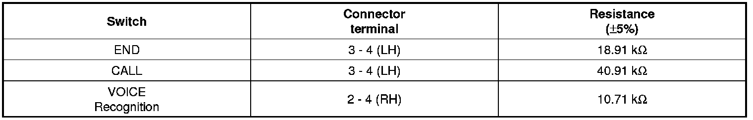 1. Check the hands free remote control switch for resistance between No.3 and No.4 terminals in each switch position.