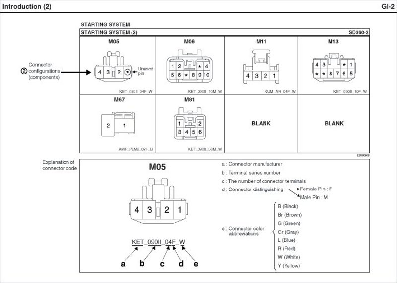 - It shows the front of the connector on the harness side when not to the harness connector. The terminal number on each connector can be obtained by following the pattern used in (5) connector view and numbering order. Unused terminals are marked with an asterisk (*).