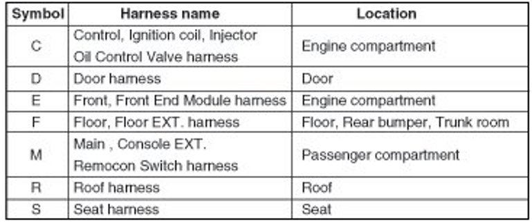 * It depends on vehicles, it is necessary to check the harness name symbol on the harness layouts for detailed symbol.