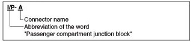 A junction block identification symbol consists of a wiring harness location classification symbol corresponding to a wiring harness location and number corresponding to the connector in the junction block.