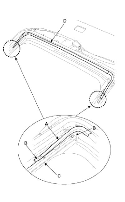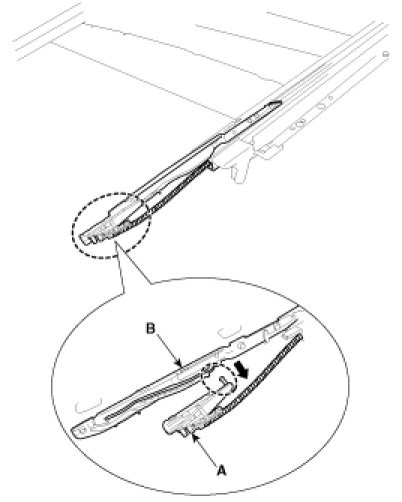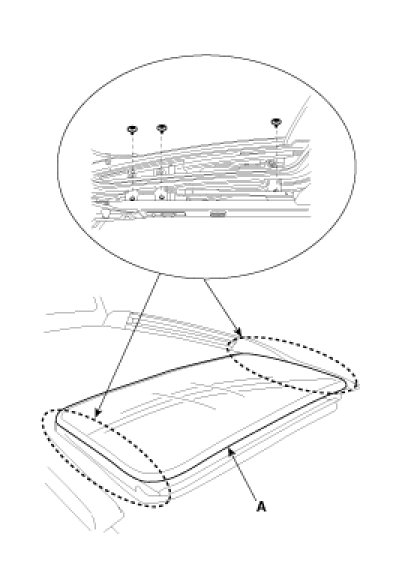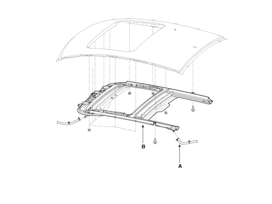 3. After loosening the mounding bolts and nuts, remove the sunroof assembly (B).