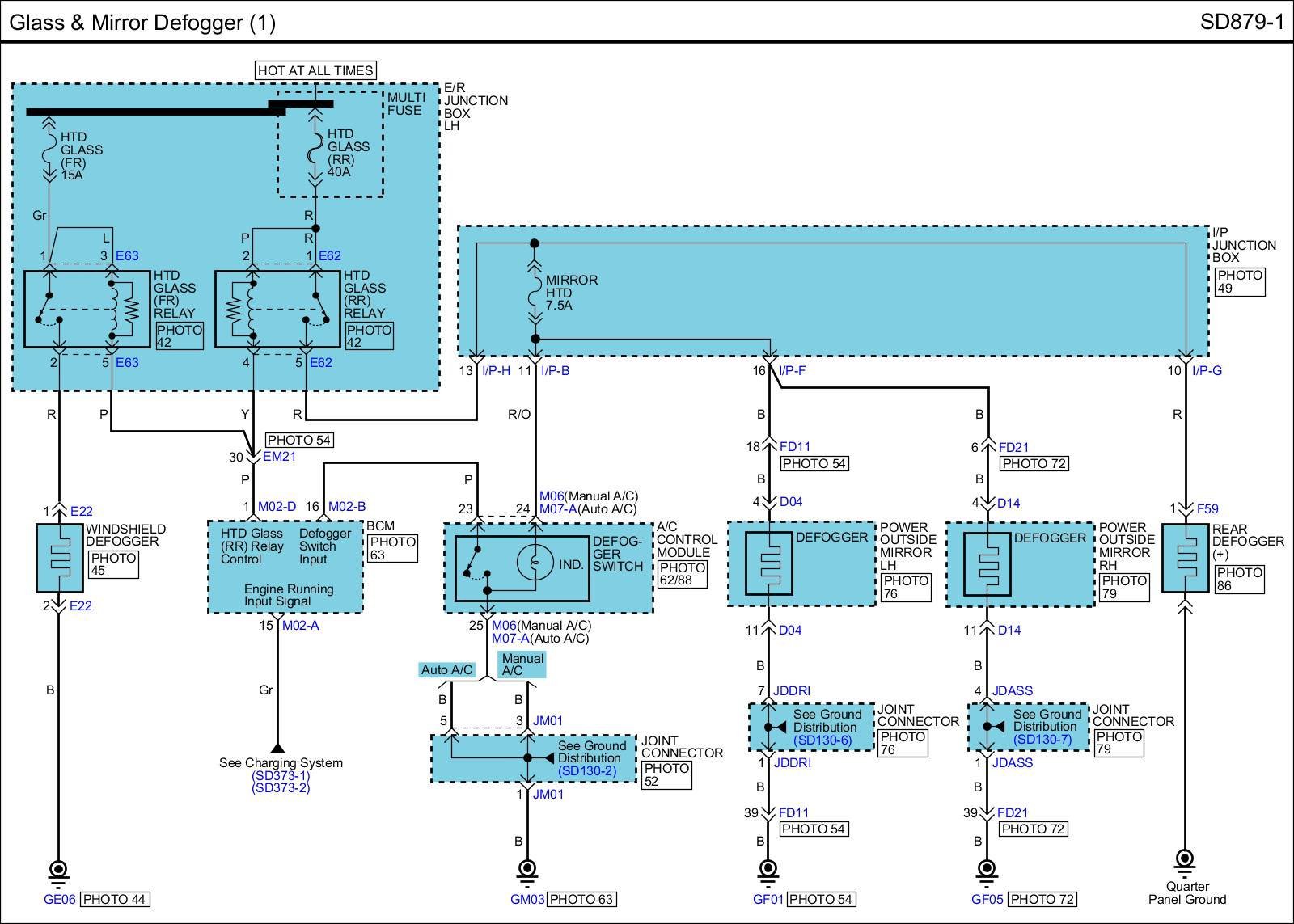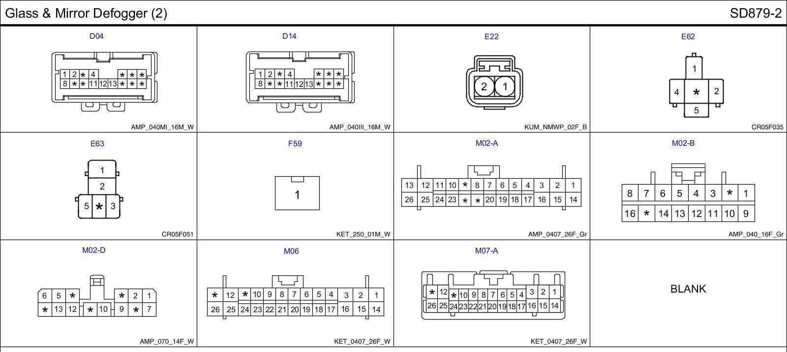 Glass & Mirror Defogger (2) Connector Pin Outs: