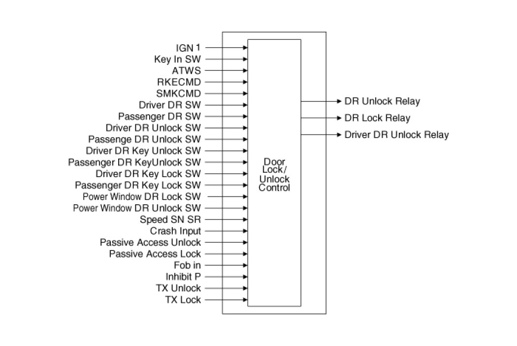 (2) Perform Door Unlock Relay output for 1s after 0.5s when the condition becomes to be KEY IN ON, Driver Door SW is OPENED and Driver Door Unlock SW is LOCKED.