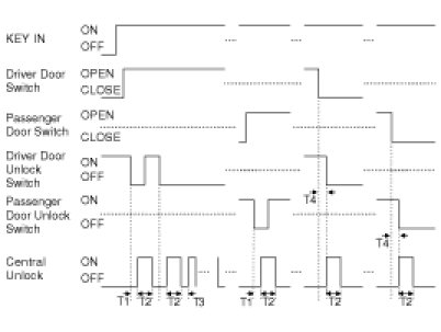 (2) When Driver Door Key Unlock and Passenger Door Key Unlock turn ON, turn Door Unlock Relay and Driver Door Unlock Relay output ON during T1.