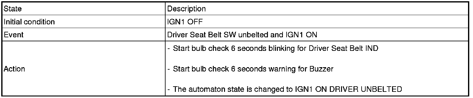 (1) When Driver Door SW is ON at the status of KEY IN ON, Buzzer will be outputted per 0.6sec continuously.