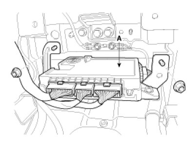 4. Remove the body control module(A) after loosening 2 nuts and disconnecting the connectors.
